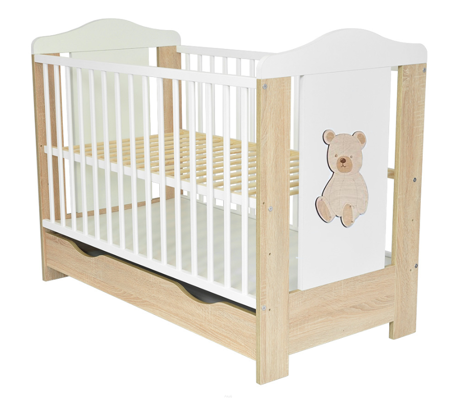 Sa structure en bois de pin et panneaux de mobilier assure stabilité et durabilité. Le lit dispose de trois niveaux de réglage du matelas, permettant d’adapter la hauteur du couchage selon l’âge de l’enfant. Les barreaux amovibles facilitent l’autonomie lorsque l’enfant grandit, tout en conservant un environnement sécurisé.